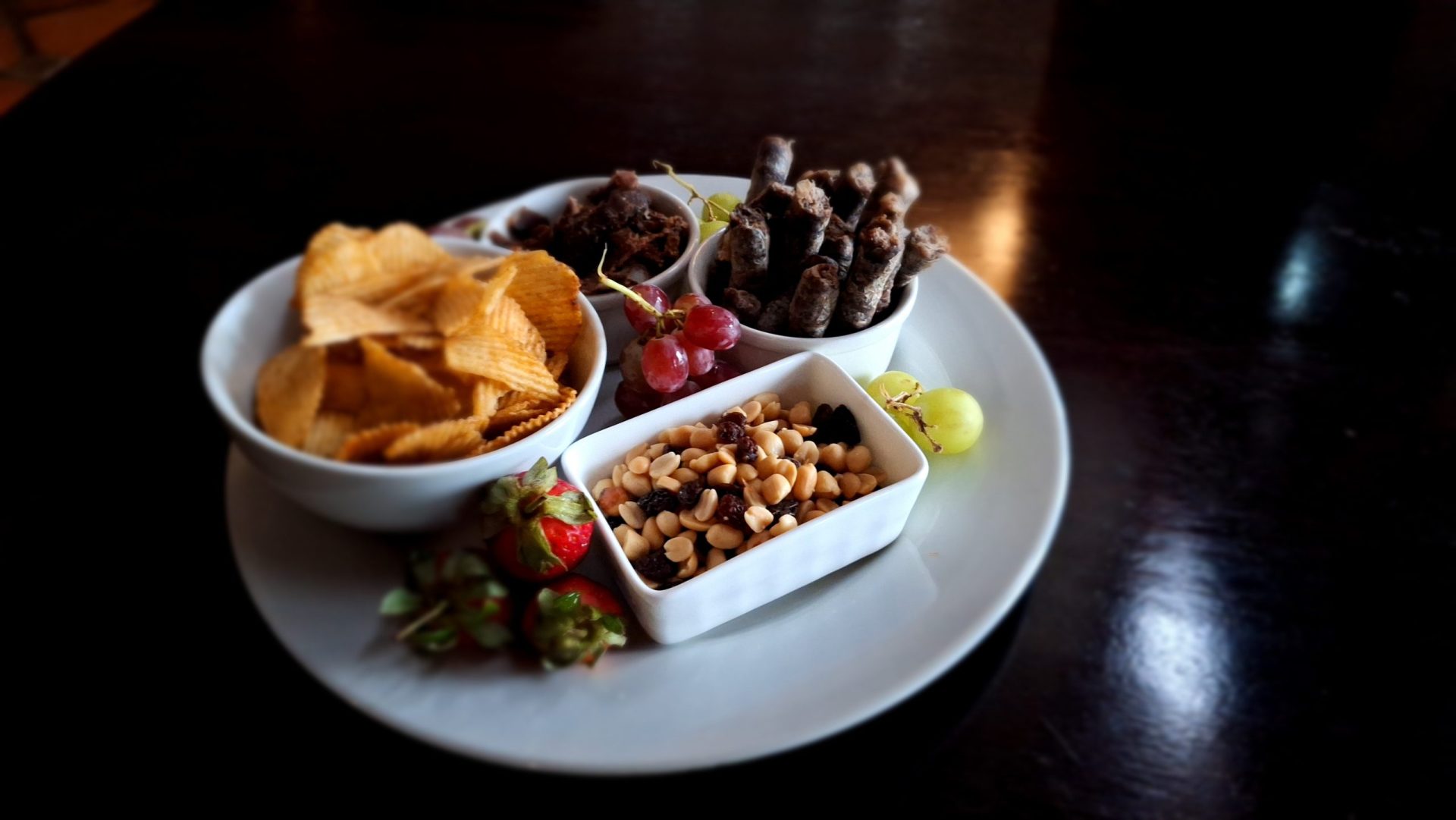 The tasting takes place in the cozy main lodge, where you can relax in comfort. From the outdoor terrace, you have a panoramic view of the reserve, home to giraffes, zebras, impalas, monkeys, and much more, making this an unforgettable experience.