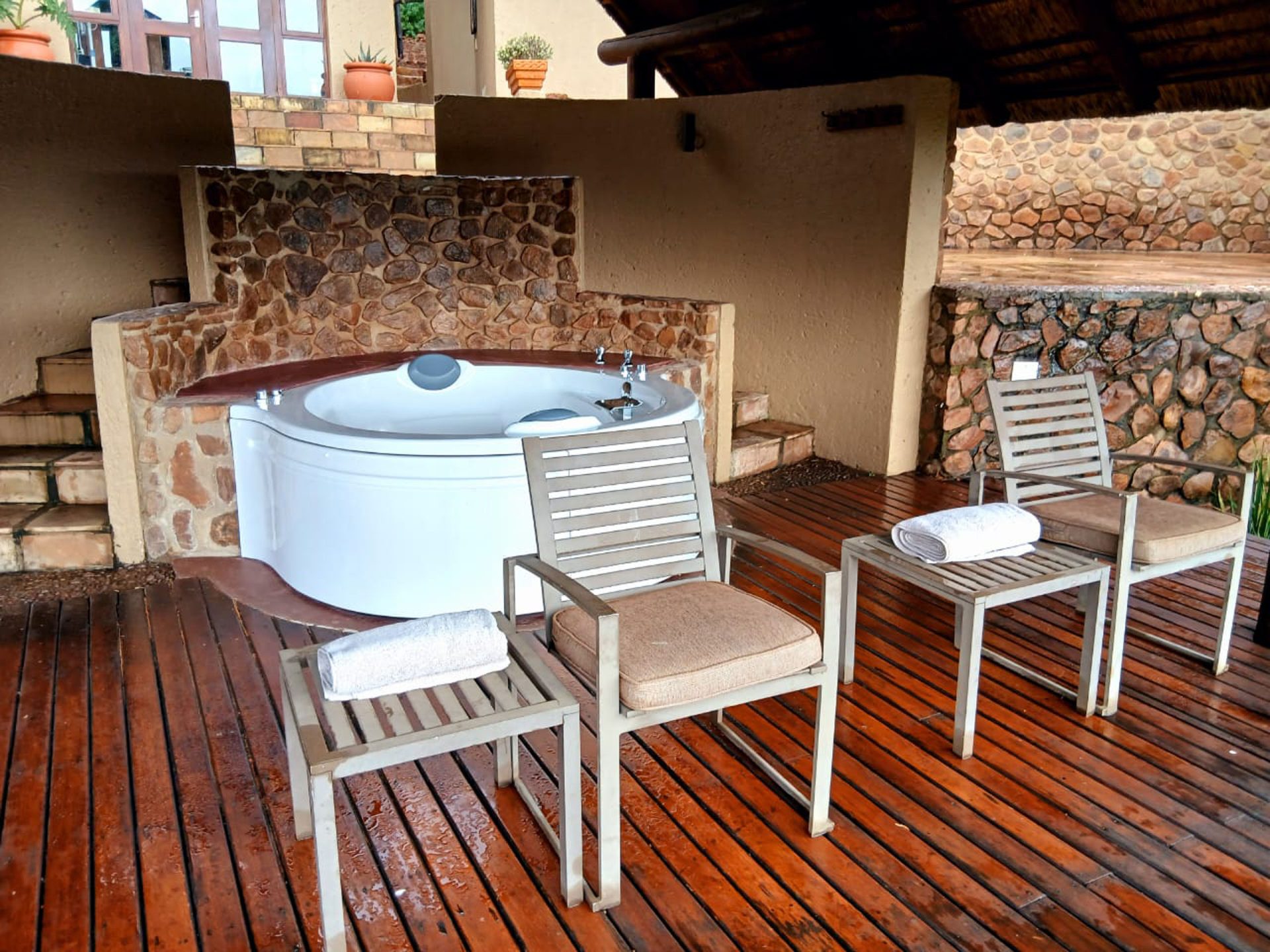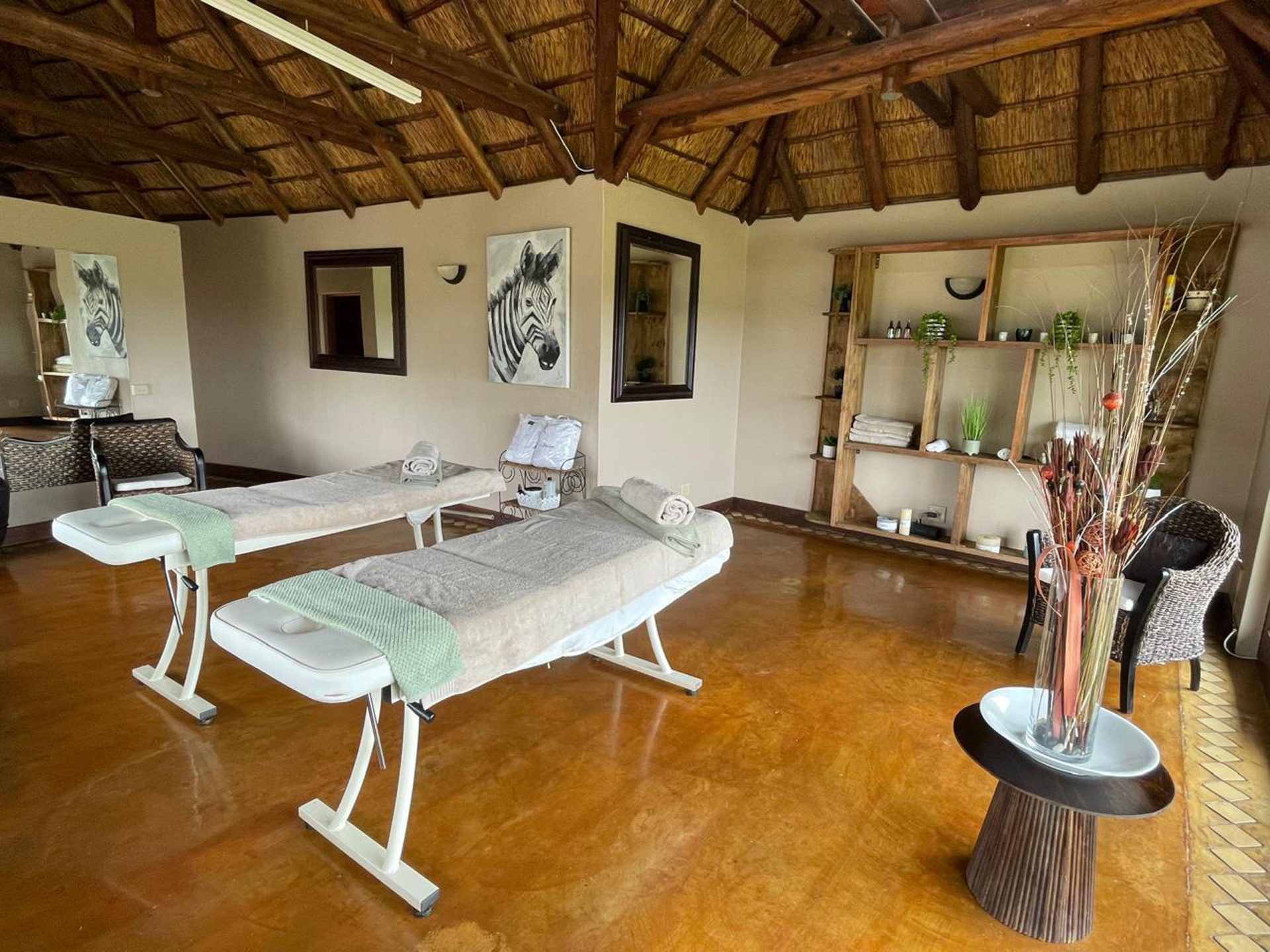 The spa also features a peaceful lounge, sauna, hot tub, and comfortable loungers where you can relax at your own pace. From the jacuzzi, you can enjoy breathtaking views of the reserve. It is not uncommon to see giraffes walking by, or to simply close your eyes and listen to the chorus of birdsong around you.